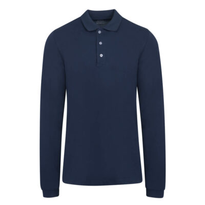 Prince Oliver Long Sleeve Polo in Cotton Dark Blue (Modern Fit)