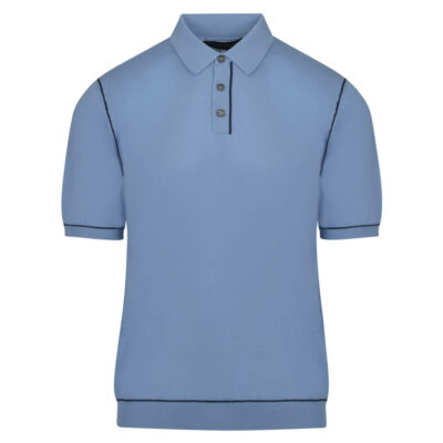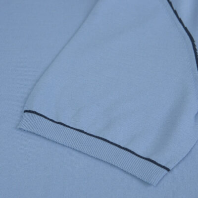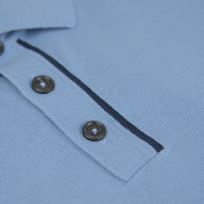 Two Tone Mao Polo Double Pique Blue in Cotton Regular Fit