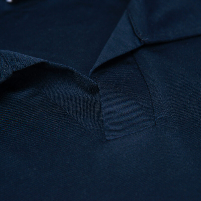 Two Tone Mao Polo Double Pique Dark Blue in Cotton Regular Fit