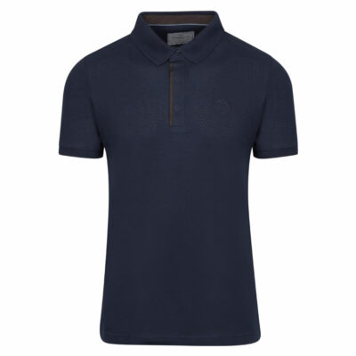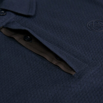 Two Tone Mao Polo Double Pique Dark Blue in Cotton Regular Fit