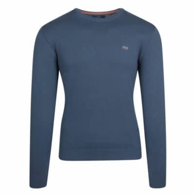 Signature Sweater Blue Ruffle Round Neck 100%Cotton (Modern Fit)