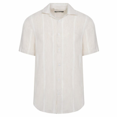 Beige Shirt with Striped Detail in Cotton and Linen