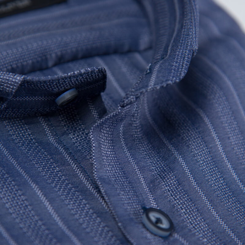 Mao Blue Striped Shirt in Cotton Modern Fit