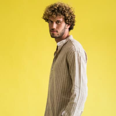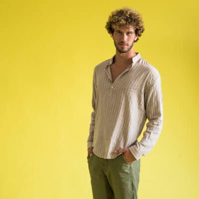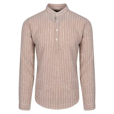 Prince Oliver Beige Striped Shirt with Mao Collar (Modern Fit)