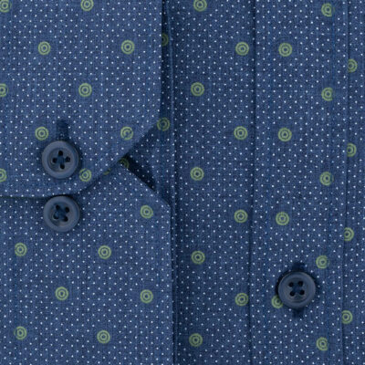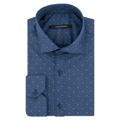 Prince Oliver Blue Shirt with Green Micro Design (Modern Fit)