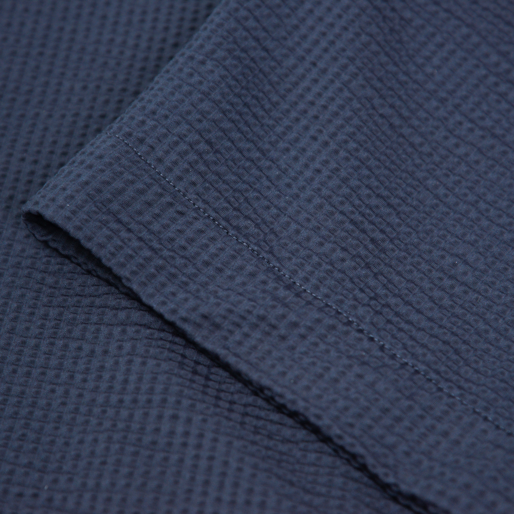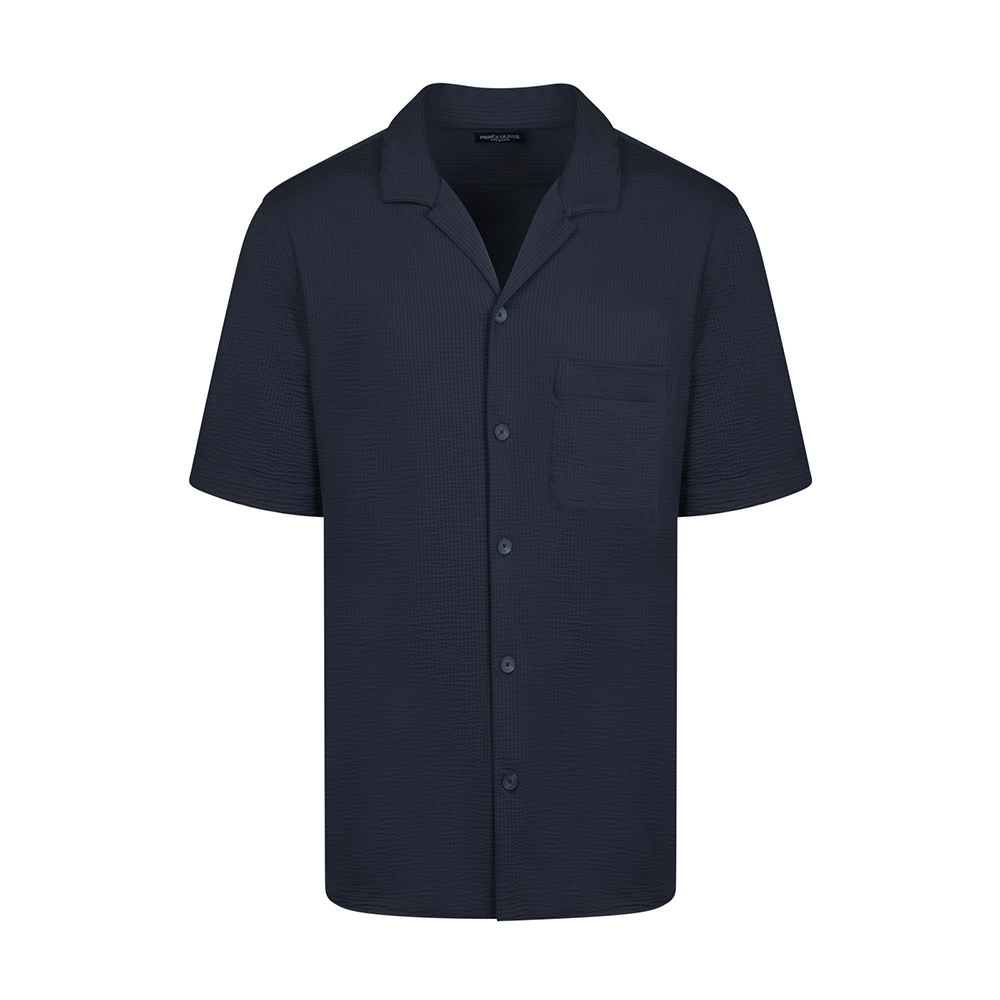 Upgrade your summer style, a shirt designed for the modern man on the move, this piece marries traditional Italian tailoring with next-generation fabric technology. It features a distinctive textured weave, which in addition to aesthetic excellence, allows the body to breathe, making it ideal for warmer days. With its iconic camp collar (open collar) and comfortable fit, it offers an effortless cool look that can be worn from the office in the morning to evening summer outings.