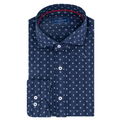 Superior Shirt Blue with White Rhombus 100% Fine Cotton (Modern Fit)