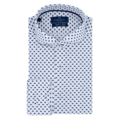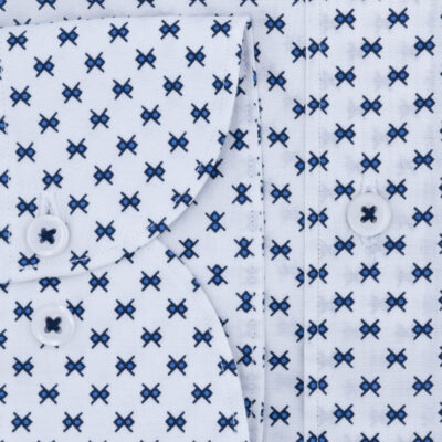 Superior White Shirt with Blue Micro Design 100% Fine Cotton (Modern Fit)