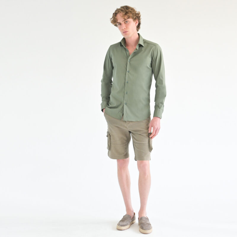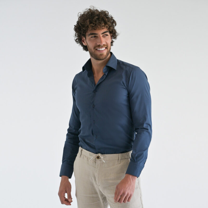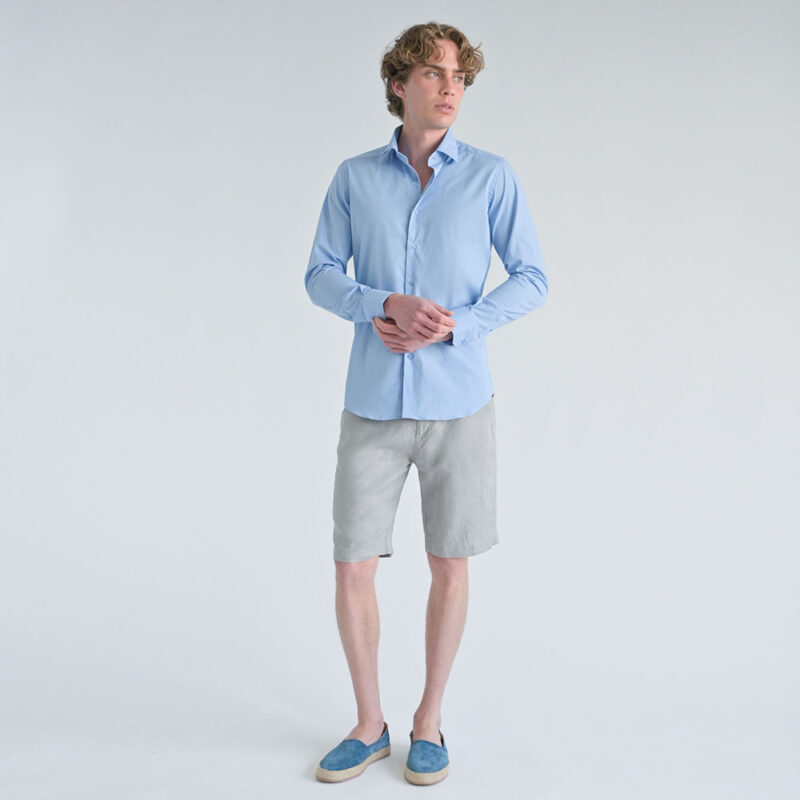 A long-sleeved shirt captures the creative excellence of the Prince Oliver house and composes a complete Italian look, it is the other half of chinos, while it flirts openly with jackets and oxford shoes.