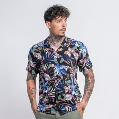 Shirt Black Floral 100% Viscose (Modern Fit)