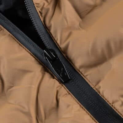 Heat seal down sleeveless jacket (pressed with special technique and style), with waterproof zippers, detachable hood and dynamic style. A proposal according to the latest Fashion trend, which will keep you warm, comfortable and elegant.
