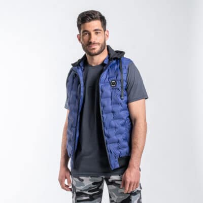 Heat seal down sleeveless jacket (pressed with special technique and style), with waterproof zippers, detachable hood and dynamic style. A proposal according to the latest Fashion trend, which will keep you warm, comfortable and elegant.