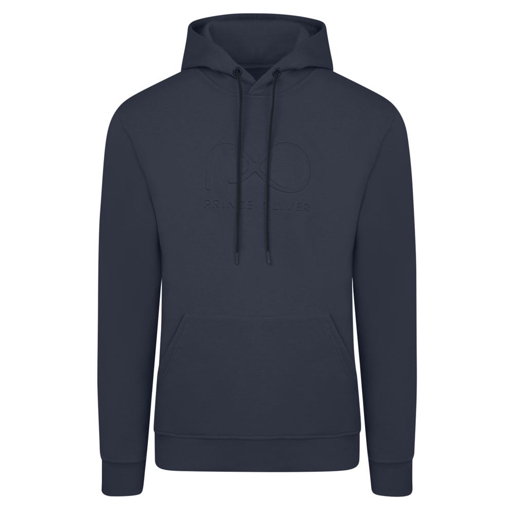 Hooded Sweatshirt Dark Blue with 3D Embossed Logo in Combed Cotton Modern Fit