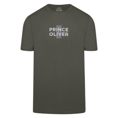 Prince Oliver Khaki T-Shirt with Logo Print in Cotton (Modern Fit)