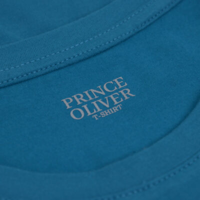 Crew Neck T-Shirt Petrol with Logo Print in Cotton