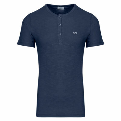 Prince Oliver T-Shirt Henley Blue 100% Cotton (Modern Fit)