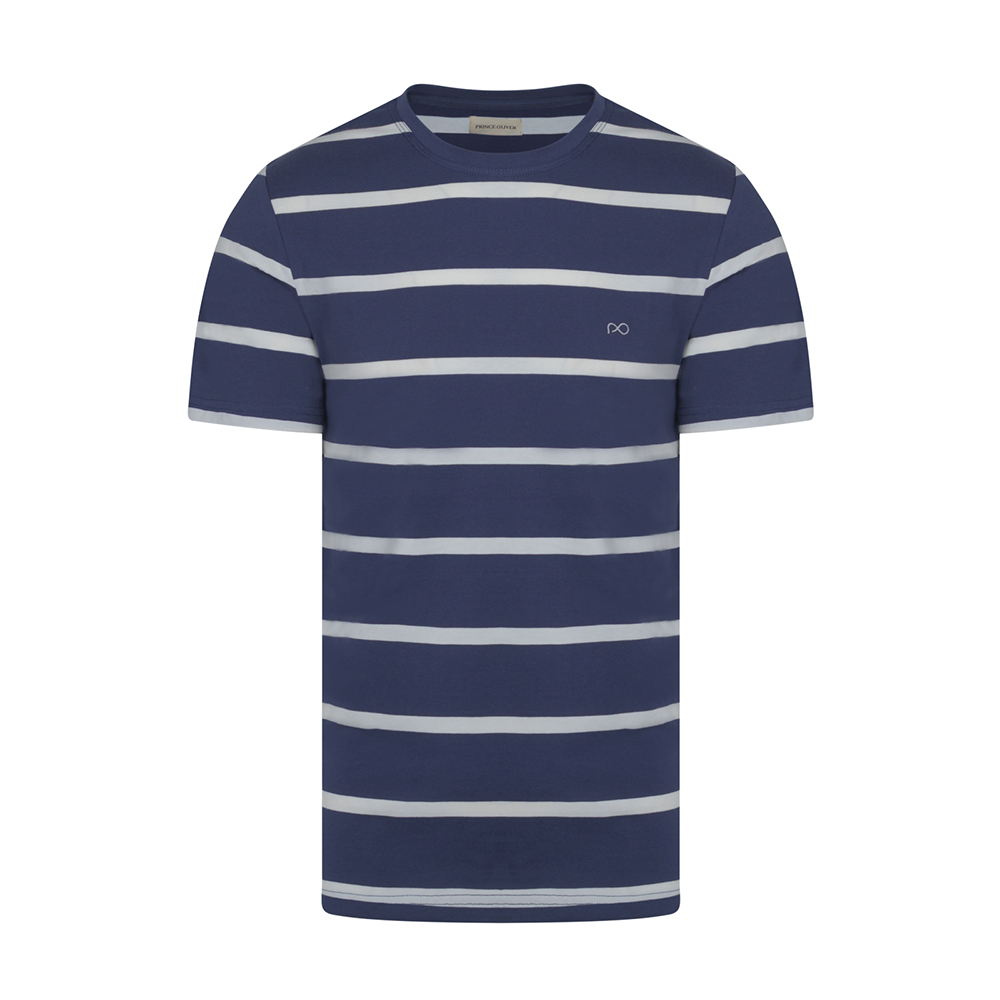 T-Shirt Blue Dark Striped in Cotton Regular Fit