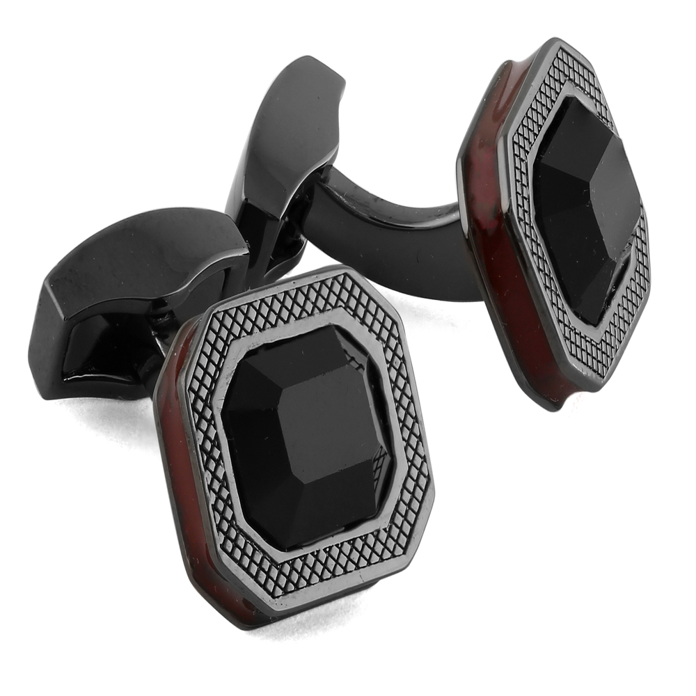 Cufflinks “Octagon” with Black Crystal & Burgundy Enamel