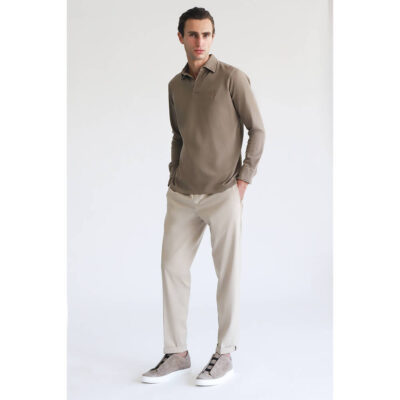 Premium Fabric Pants Beige Cotton Stretch Modern Fit