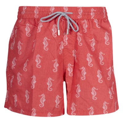 To stand out in your beach appearances and to attract the eyes, choose a swimsuit with marine motifs, Mediterranean and Hawaiian influences. At the right length, it dries very quickly and fits perfectly with colored polo shirt, jockey hat and espadrilles or white sneakers.