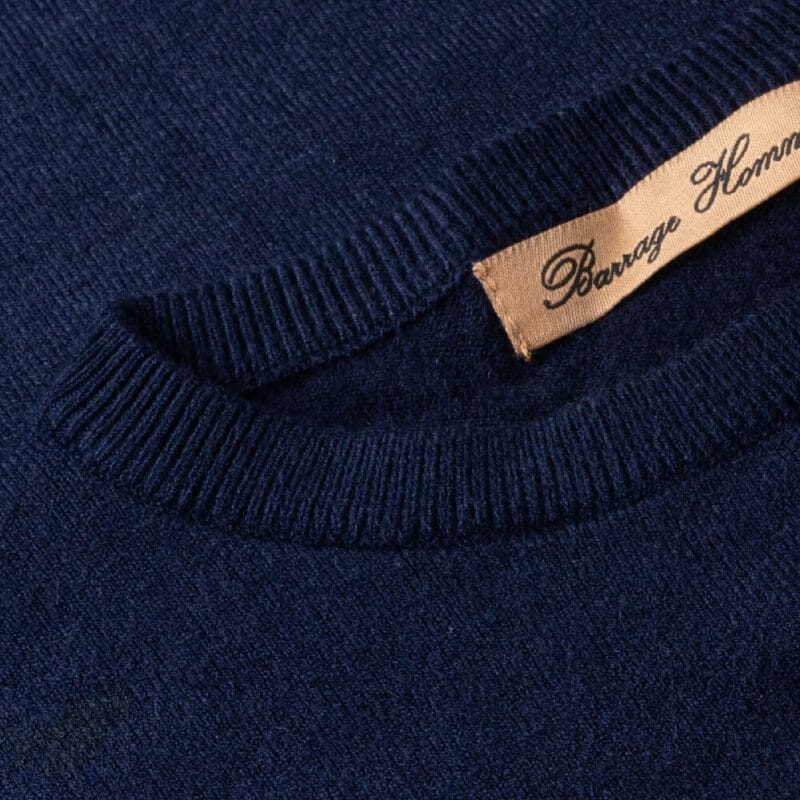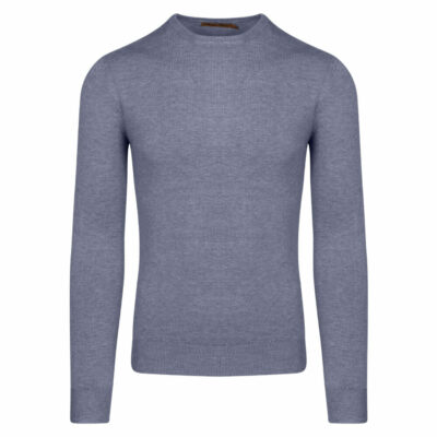 Prince Oliver Knitted Blouse Light Dark Blue Round Neck Cashmere Touch (Modern Fit)