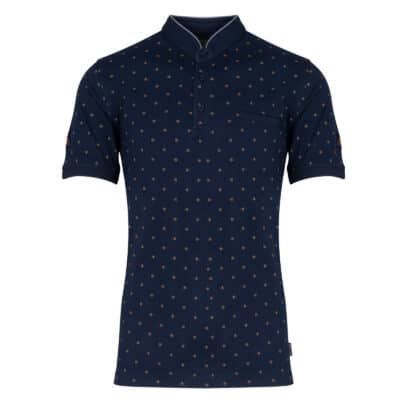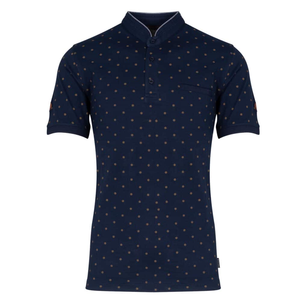 Prince Oliver Polo Blue With Design and Mao Collar 100% Cotton (Modern Fit)