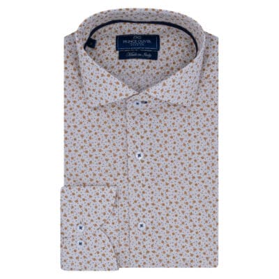 Superior Beige Shirt with Miniature Design 100% Fine Cotton (Modern Fit)