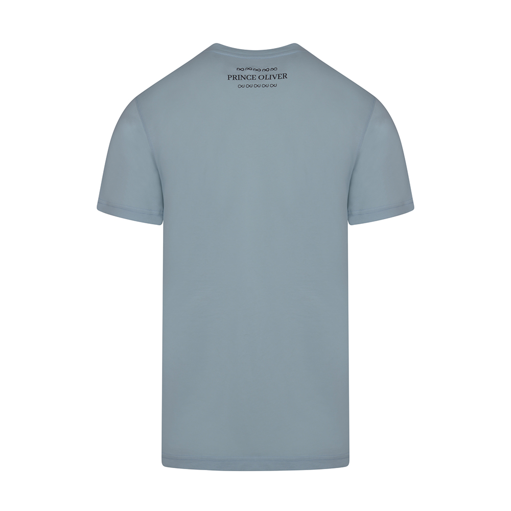 T-shirt Light Blue Cotton Stretch with Logo on Back Modern Fit