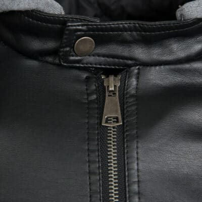 Made with ecological materials ECO LEATHER and with a detachable sweatshirt hood for a complete casual look.