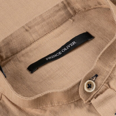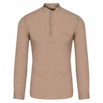 Prince Oliver Beige Mao Collar Shirt 100% Cotton (Modern Fit)