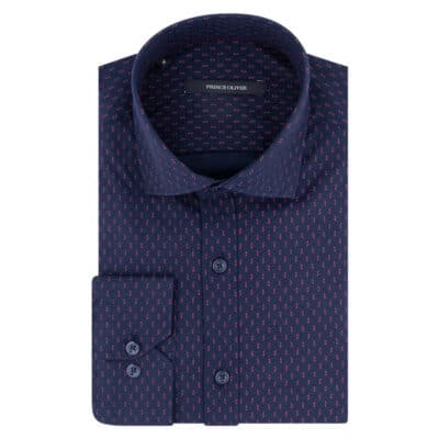 Prince Oliver Blue Shirt with Red Micro Design (Modern Fit)