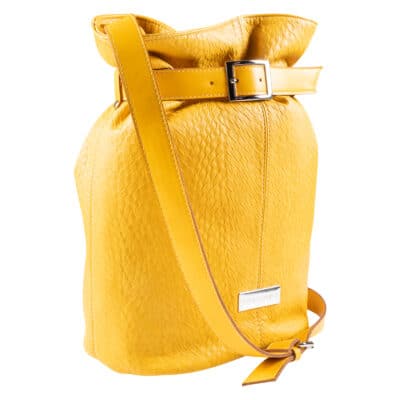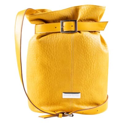 Prince Oliver Women’s Bag Bucket with Ornate Clasp Belt Strap Yellow Eco Leather