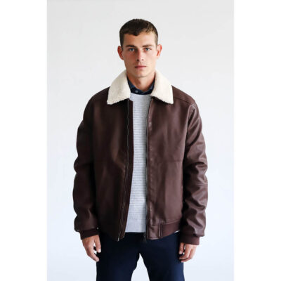 Prince Oliver Aviator Jacket Eco Leather Brown with Detachable Collar (Modern Fit)