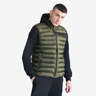 Lightweight Khaki Sleeveless Jacket with Logo Print (Modern Fit)