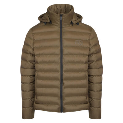 Olive Lightweight Jacket with Logo Print & Detachable Hood (Modern Fit)
