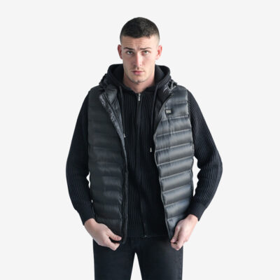 Lightweight Sleeveless Jacket Black with 3D Logo Tape (Modern Fit)