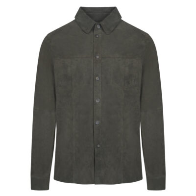 Overshirt Jacket Olive in Goat Suede Leather Modern Fit