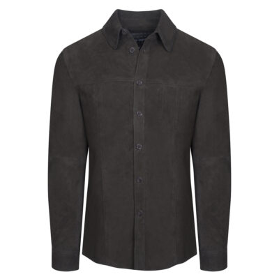 Overshirt Jacket Gray in Goat Suede Leather Modern Fit
