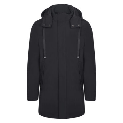 Water Repellent Hooded Parka Jacket Black & Detachable Hood Modern Fit