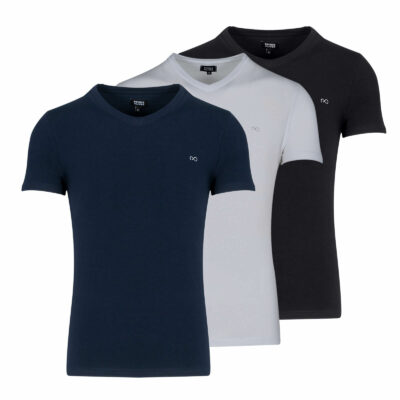 Set of 3 T-shirt all seasons V- Neck dark blue / white / black Cotton Stretch (Comfort Fit)
