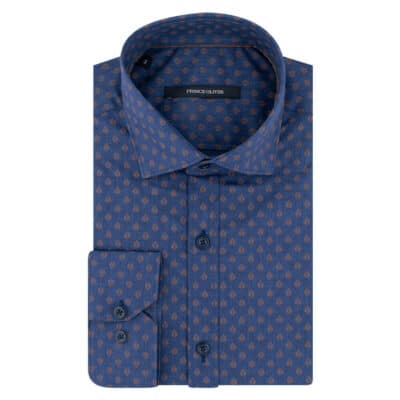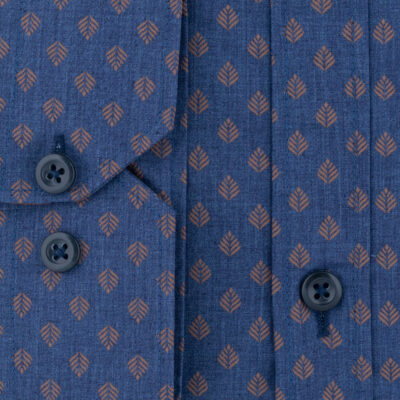 Shirt Blue With Brown Small Design Only Large Sizes (Modern Fit) New Arrival