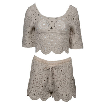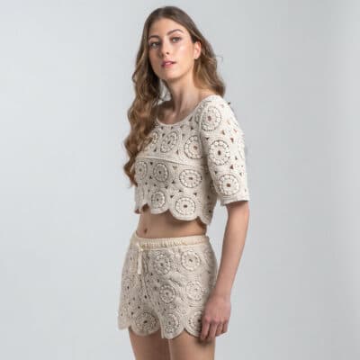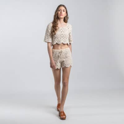 Boho Lace Twin Set with perforated crop and reinforced lining on the shorts for a comfortable and easy fit!