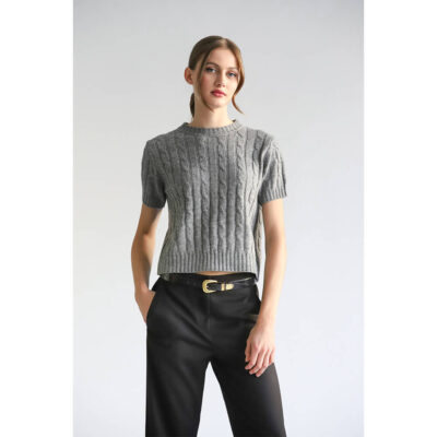 Women’s Knitted Short Sleeve Crew Neck Blouse Gray NEW PRICE