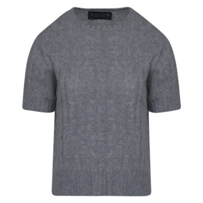 Women’s Knitted Crew Neck Short Sleeve Blouse Gray