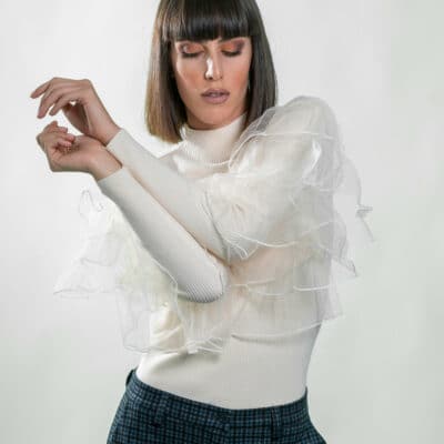 If you want a special outfit, then do not hesitate to wear this top. Match it with slim line pants, an elegant waist coat, a pair of elegant pair of thin boots and make a final touch with a leather handbag.
