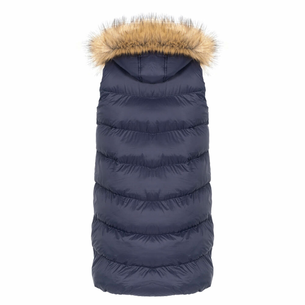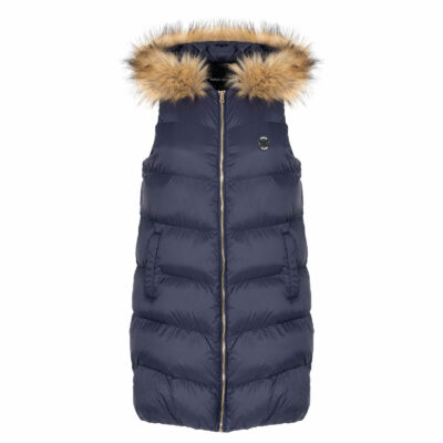 Long sleeveless jacket with arctic elements and detachable fur, to really enjoy the winter without compromising on style. Comfortable and warm, it will become your most indispensable companion on all cold days and nights, whether in the city or in the countryside, and will adapt to any clothing choice.
