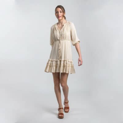 Boho Dress Beige 100% Cotton