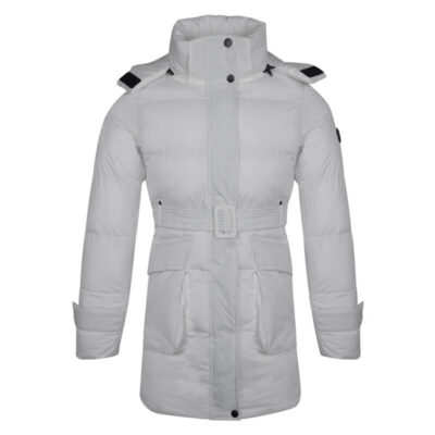 Padded jacket in (Regular Fit) with feather touch, waist belt and detachable hood. Comfortable, warm and light essential for cold winter days, whether in the city or in the countryside!