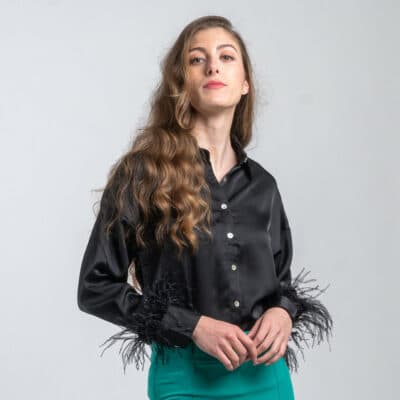 A very designer shirt, with special details on the sleeves for very elegant and feminine outfits, combine it with formal and slim line trousers, as well as with satin trousers.