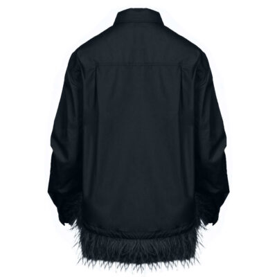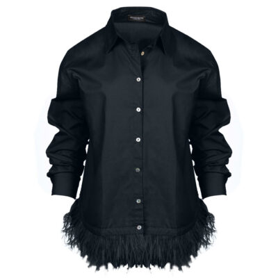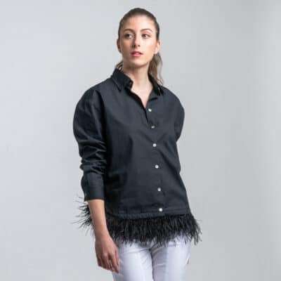 A highly designed shirt, with special details at the end for very elegant and feminine outfits, combined it with formal and slim line pants, as you could easily combine it with jeans and biker boots.
